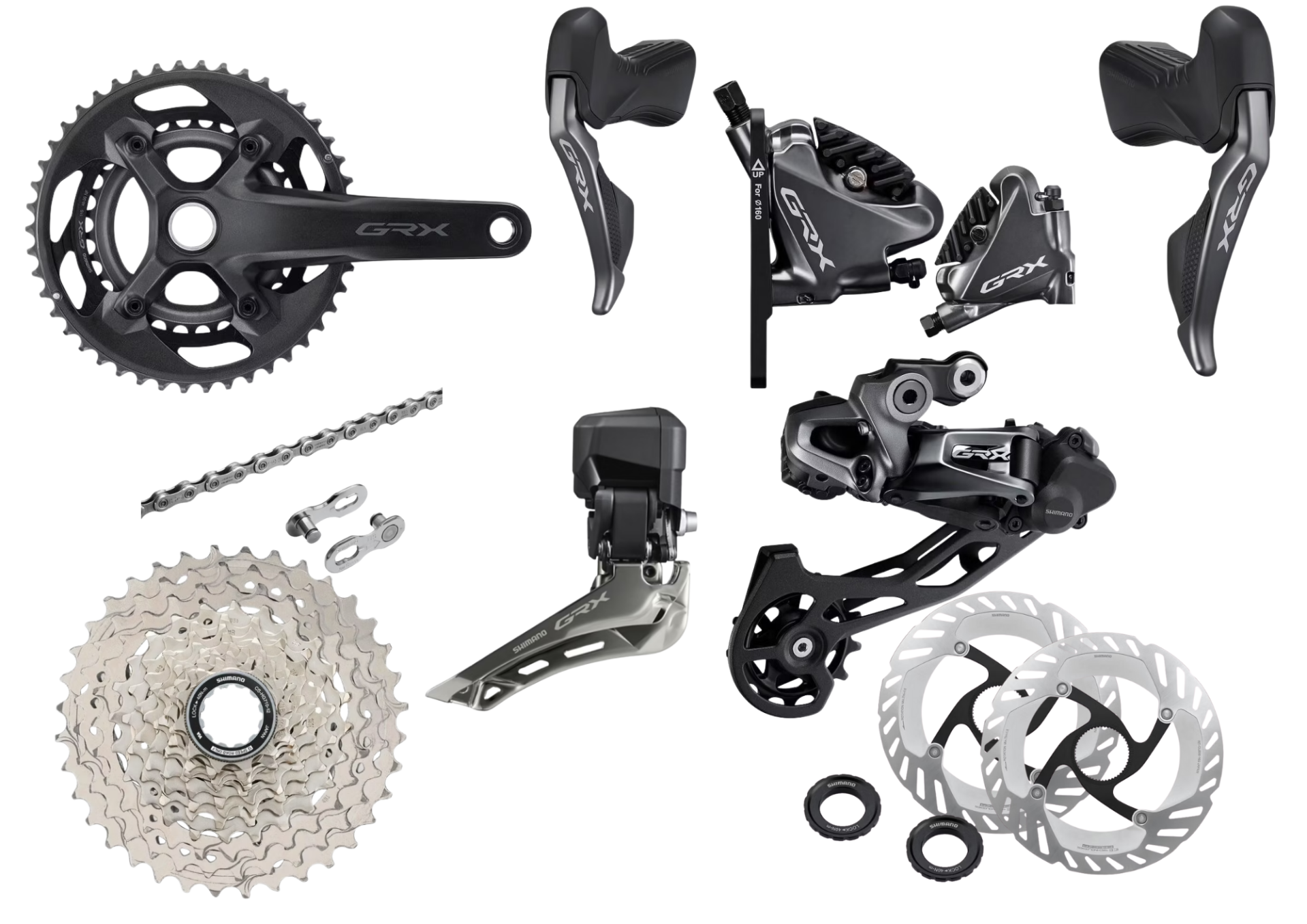 Groupe complet : Shimano GRx Di2 dernière génération, précision et contrôle optimisés pour le Gravel.